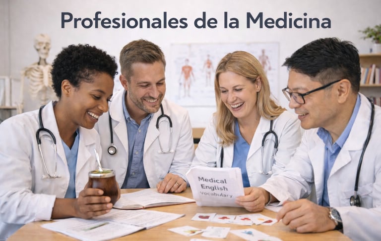 Estas clases son altamente especializadas, ya que cuentan con un lenguaje altamente técnico, por lo que será necesario contar con conocimiento previo en el área de la medicina. Es de público conocimiento el éxito que tiene el personal médico en el exterior tanto realizando pasantías como haciendo residencias, especializaciones, buscando trabajo o radicándose como profesional. Para cualquier país, se exige el idioma inglés además del idioma nacional.